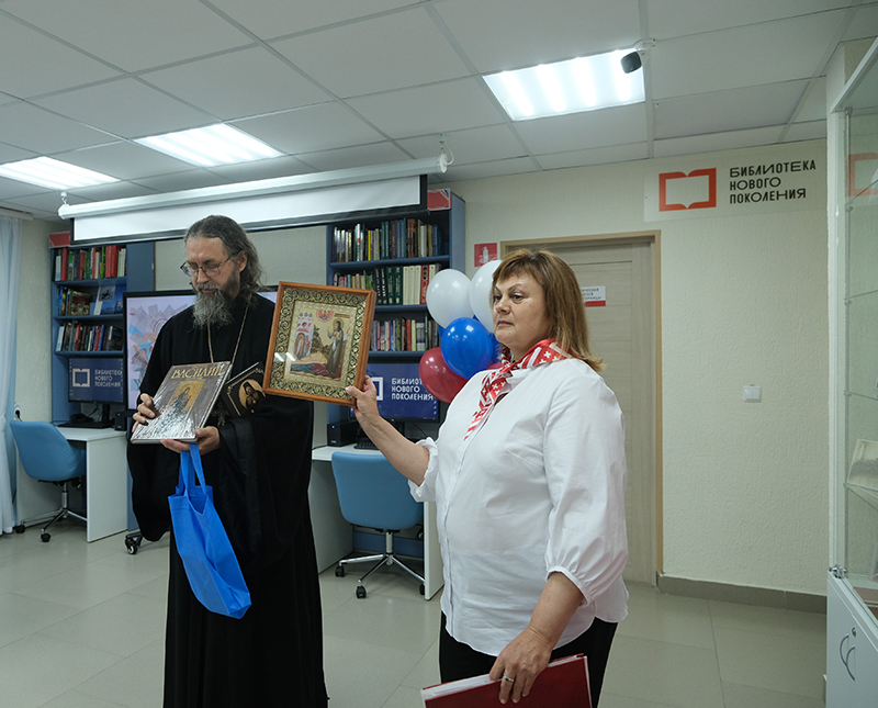 На открытии также выступили директор Рязанской областной детской библиотеки имени Б.И. Жаворонкова Ольга Лебедева, заместитель начальника управления культуры администрации города Рязани Марина Лушина, заместитель директора по коммуникациям Централизованной библиотечной системы Инна Щербакова, директор Централизованной системы детских библиотек Зинаида Сухова, протоиерей Георгий Марков, клирик Александра Невского храма, настоятель Тихвинского прихода, постоянная читательница библиотеки «Берегиня» Надежда Рудакова.