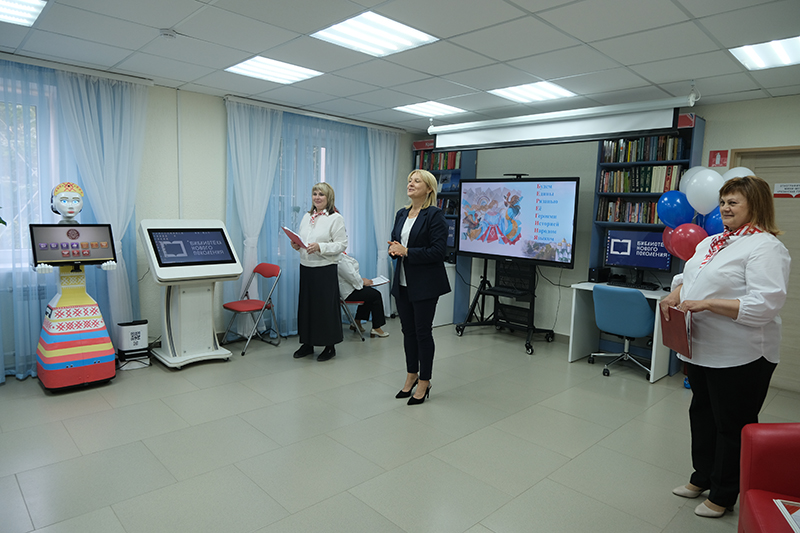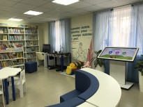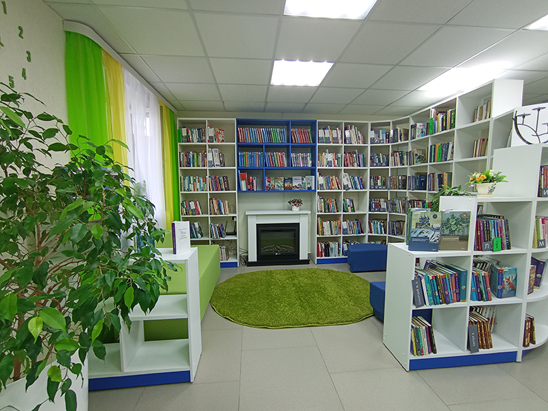 Благодаря участию в национальном проекте «Семья» фонд библиотеки пополнился более чем на 5000 экземпляров книг. В оформлении нового библиотечного пространства использована оригинальная художественная роспись стен, появились необычные локации – литературная гостиная с декоративным камином и мягким уютным ковром, где читатели смогут с комфортом расположиться с книгой. Рядом с каминной зоной оформлена стена «Можно Ваш автограф?», на которой будут расписываться именитые гости. Особый интерес у посетителей вызовут зоны семейного чтения и неформального общения. Для читателей организованы автоматизированные рабочие места с доступом к ресурсам НЭБ, НЭДБ, Президентской библиотеки.