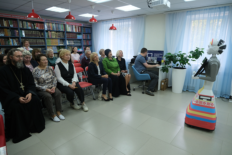Сюрпризом праздника стала встреча и общение гостей с первым рязанским роботом- библиотекарем по имени Авдотья. Он создан специально для модельной библиотеки «Берегиня» по образу былинной героини – Авдотьи Рязаночки, вызволившей из татарского плена не только своих родных – мужа, брата и сына, но и всех земляков. Робот, ставший собирательным образом самоотверженных русских женщин, – полноправный сотрудник библиотеки. Он уже побывал на праздновании 930-летия Рязани. На церемонии открытия «Берегини» робот побеседовал с почетным гостем – Натальей Гришиной. В рабочие дни Авдотья будет проводить экскурсии по библиотеке, читать вслух книги, презентовать книжные новинки, общаться с посетителями, отвечать на их вопросы. Робот также может запоминать имена и лица читателей и узнавать их при следующей встрече, понимать и выполнять голосовые команды.