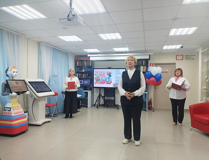 После знакомства с обновленной библиотекой была организована праздничная программа. Гостям было представлено поздравительное видеообращение министра культуры Российской Федерации Ольги Любимовой и генерального директора Российской государственной библиотеки Вадима Дуды. В связи с открытием в библиотеке удаленного электронного читального зала Президентской библиотеки имени Б.Н. Ельцина коллектив «Берегини» поздравил генеральный директор Юрий Носов.