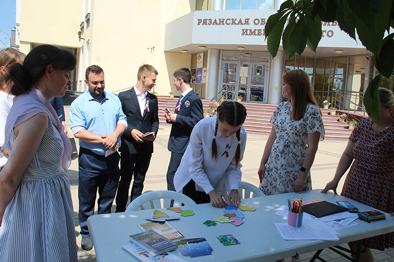 9 июня в библиотеке имени Горького прошла интерактивная акция «От губернии до края», посвященная Дню России. Сотрудники краеведческого отдела вышли в Библиосквер, для того чтобы поздравить рязанцев с праздником свободы, мира и единства и предложить поучаствовать в викторине. Юные участники акции с большим интересом собирали пазлы «Рязанская губерния».