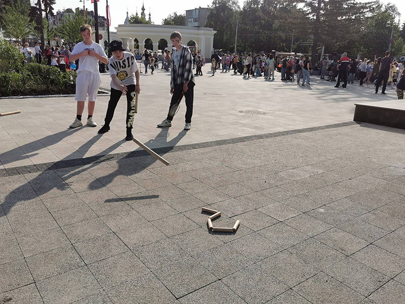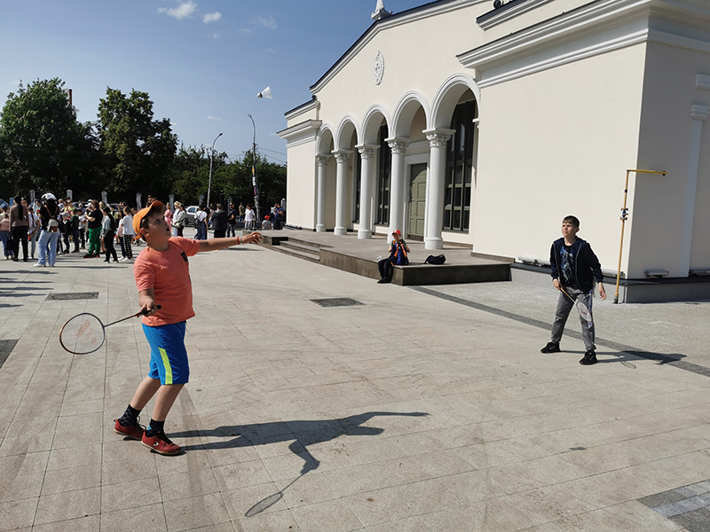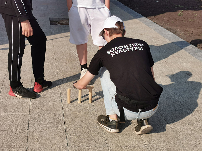 В праздничной программе приняли участие и сотрудники библиотеки им. Горького. Совместно с волонтерами культуры и волонтерами МКЦ г. Рязани библиотекари организовали площадку с играми советской эпохи: резиночка, бадминтон, классики, городки пользовались большой популярностью не только у детей, но и у их родителей.