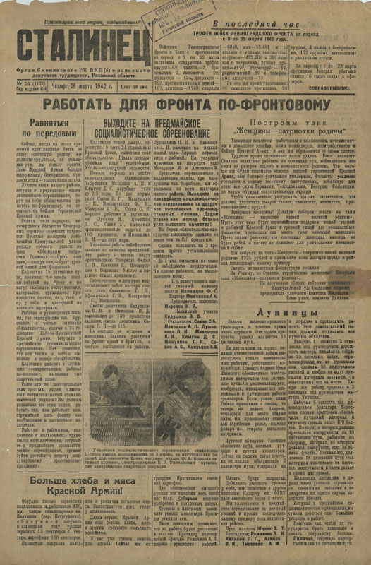 Сотрудники сектора оцифровки документов библиотеки им. Горького перевели в электронный вид подшивки газеты «Сталинец» Скопинского района за 1942–1949 гг.