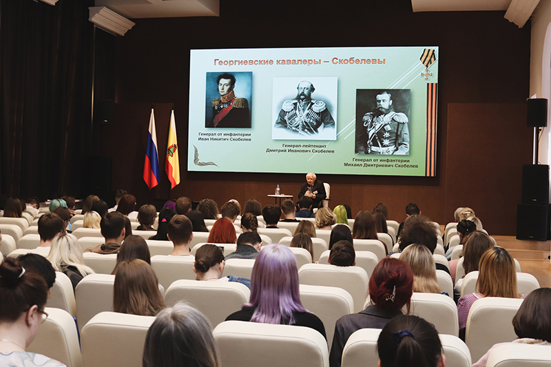 В продолжение первого дня форума прошла лекция «Малоизвестные факты о пребывании Скобелевых в Рязанской губернии», которую провел Николай Семенович Попов, ведущий научный сотрудник краеведческого информационного отдела Рязанской областной универсальной научной библиотеки имени Горького. Участники форума с живым интересом узнали о редких фактах жизни семьи Скобелевых, что дало возможность лучше понять личность самого великого генерала, и смогли задать интересующие их вопросы лектору.