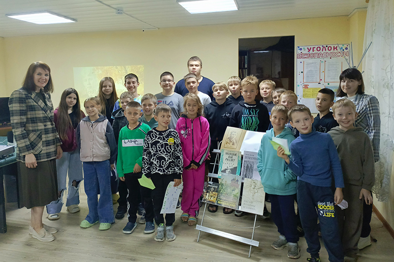 Воспитанники лагеря узнали интересные факты из биографии Сергея Есенина и услышали песни на его стихи в исполнении известных артистов: Иосифа Кобзона («Ах, какая песня родом из Рязани»), Александра Малинина («Письмо матери»), Николая Баскова («Капли жемчужные»), Сергея Безрукова («Листья падают»), а также Государственного академического Рязанского русского народного хора имени Е. Попова («Над окошком месяц», «Спит ковыль»).