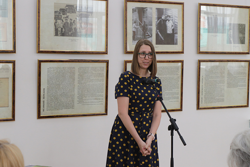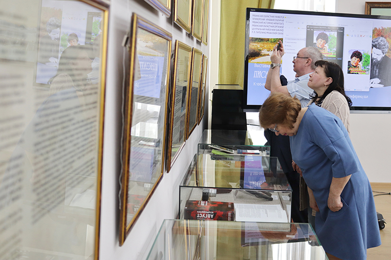 Директор Рязанской областной библиотеки имени Горького Наталья Николаевна Гришина в своем выступлении рассказала, что, готовясь к выставочному проекту, сотрудники библиотеки провели колоссальную работу по сбору информации и материалов для создания данной экспозиции. В результате совместной работы с Приморской краевой библиотекой, Пителинской районной библиотекой им. Б.А. Можаева, Музейным центром А.И. Солженицына, Рязанским отделением Союза художников РФ была создана экспозиция, в которой представлена биография и творческий путь писателя. Наталья Николаевна поблагодарила всех художников, и особенно присутствующих в зале Р.А. Лысенину и В.Л. Грушо-Новицкого, за их творчество и беззаветное служение идеалам добра и любви. Благодаря им выставка наполнилась духом Рязанской земли, необыкновенным теплом и добротой.