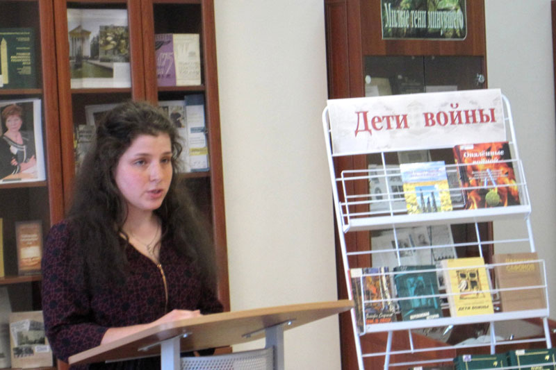 Любовь Александровна начала свое выступление с рассказа о своих предках. Ее дедушка – писатель Валентин Иванович Сафонов, уроженец р.п. Сараи Рязанской области в раннем детстве оказался вместе с семьей на оккупированной немецко-фашистскими захватчиками территории Белоруссии. Спаслись они в партизанском отряде. Детские впечатления этого периода отразятся потом в двух его повестях: «Антон и Пекаль» и «Там, в лесу, партизаны…». Его родной брат писатель Эрнст Иванович эти неизгладимые впечатления той поры отразил в своей повести «В нашем доме фашист».