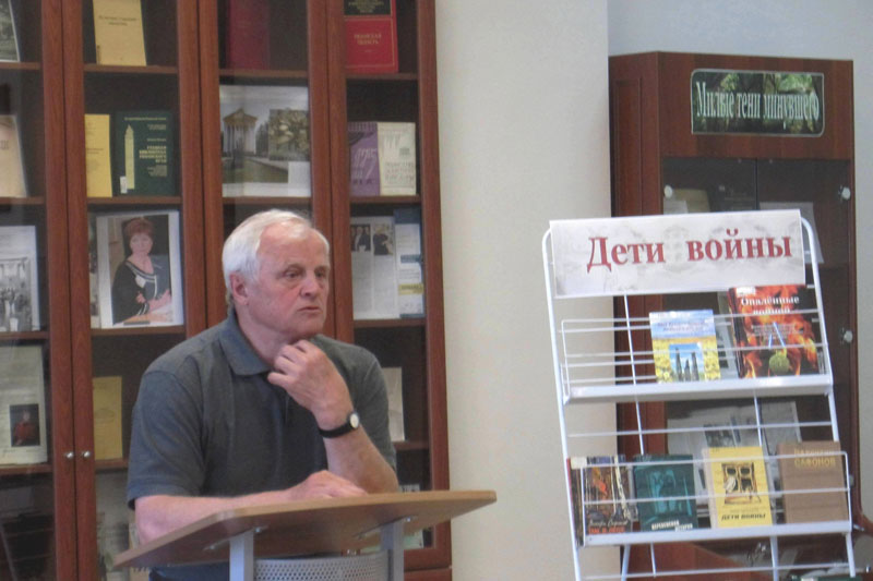 Во время встречи почетный гражданин г. Рязани, писатель А.Ф. Говоров рассказал о своем военном и послевоенном детстве. Анатолий Федорович родился 22 июля 1940 года в деревне Хомут Кораблинского района Рязанской области. В настоящее время Анатолий Федорович работает над своей новой книгой «Дитя войны».