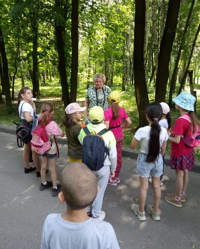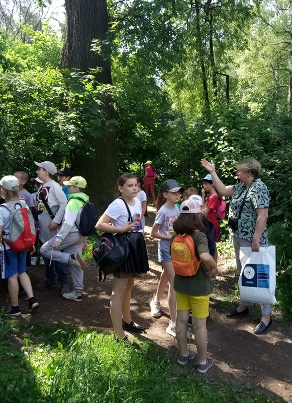 Сотрудники библиотеки имени Горького провели экскурсию «Легенды и были Рюминой рощи» для воспитанников летнего лагеря школы № 25.