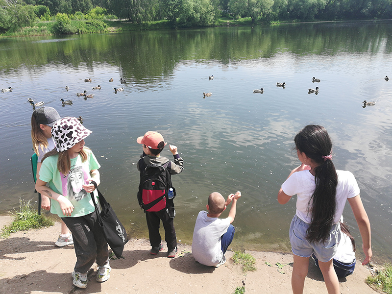 Ребята познакомились с историей парка, прогулялись по его зеленым аллеям, послушали пение птиц, покормили уток в Рюминском пруду и сфотографировались у реликтовых дубов.