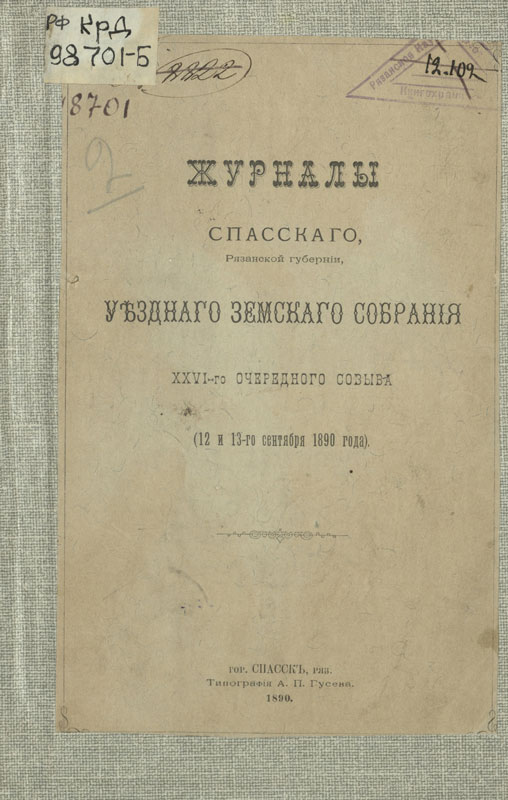 На данный момент сканируется партия документов, состоящая из журналов уездных земских собраний Рязанской губернии конца XIX – начала XX века.