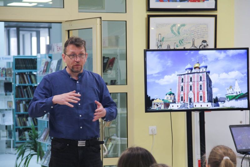 Субботним утром участников 2-го детского арт-фестиваля «Славься, Отечество!» ждала встреча с рязанским журналистом, экскурсоводом и организатором путешествий Николаем Матросовым.