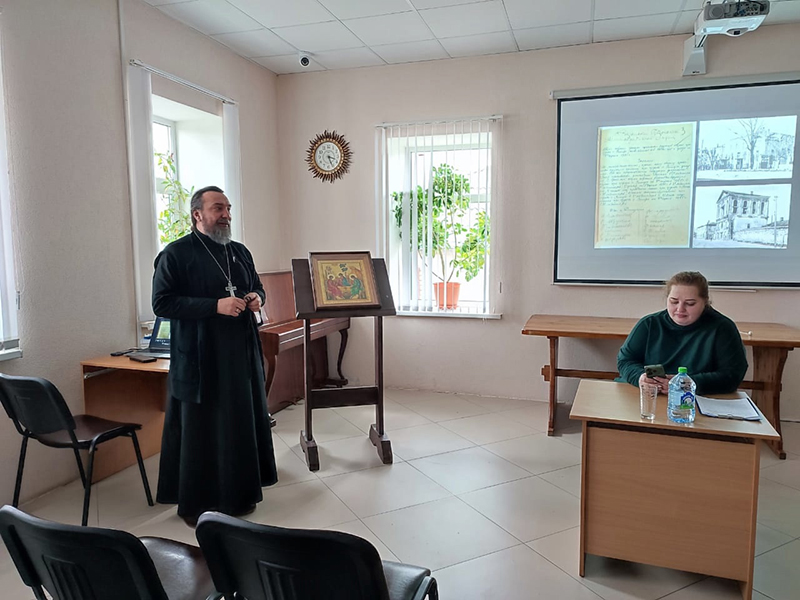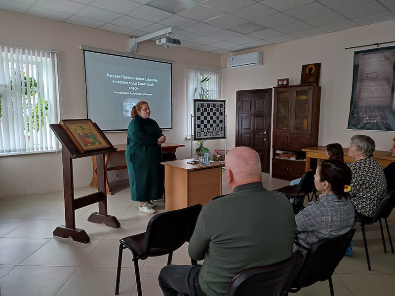 Лекция сопровождалась редкими фотографиями из Государственного архива Рязанской области и примерами из истории конкретных храмов Рязанской области.