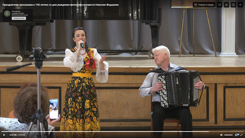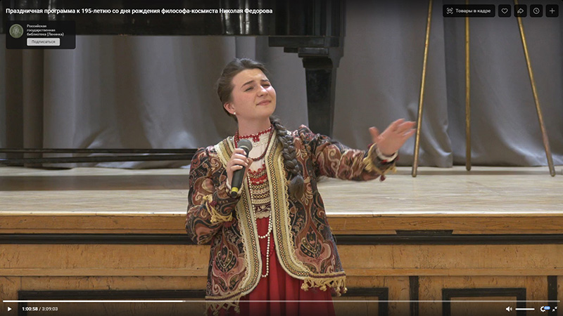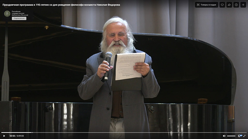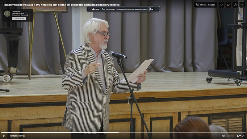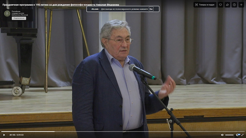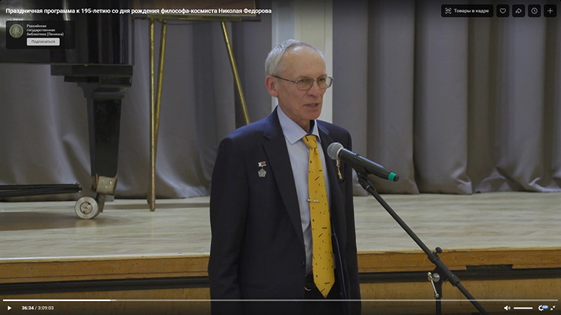 В Российской государственной библиотеке прошла праздничная программа «Жить со всеми и для всех», посвященная памяти философа общего дела, родоначальника русского космизма, педагога-новатора, теоретика и практика краеведения, библиотечной и музейной работы Николая Федоровича Федорова (1829–1903). Это имя, еще несколько десятилетий назад известное лишь небольшому кругу специалистов, в наши дни становится все более популярным не только в научной и библиотечной среде, но и, что особенно важно, среди тех, кто работает в аэрокосмической отрасли, занимается практической реализацией проектов освоения околоземного пространства и исследования дальнего космоса, создает возобновляемые источники энергии, осуществляет мониторинг и контроль климатических изменений, кто занят в других перспективных направлениях современной науки.