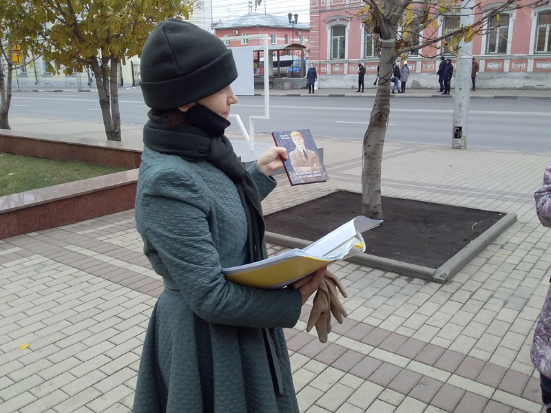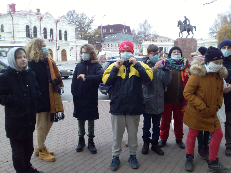 Возле Театра на Соборной ребята выяснили, где находился первый Рязанский оперный театр, кто чаще всего выступал на провинциальной сцене, как описывал жизнь крепостных актеров Александр Грибоедов.