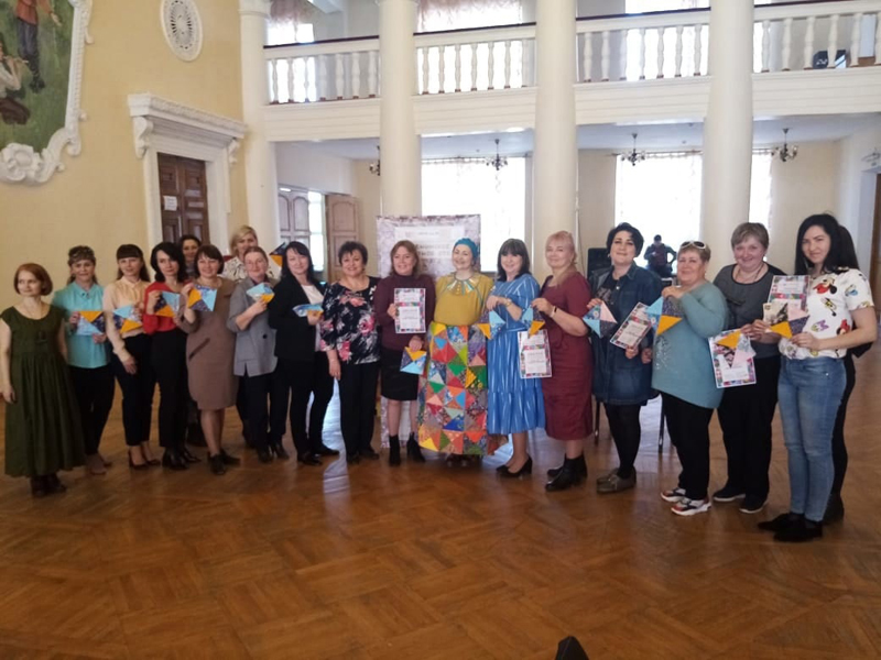 15 апреля участники проекта «Есенинское лоскутное одеяло» (руководитель – Елена Венедиктова) побывали в Скопине, где посетили Дворец культуры им. В.И. Ленина. Педагоги, воспитатели, работники культуры приняли участие в создании одеяла, задуманного по мотивам народного текстиля, представленного в Доме-музее С.А. Есенина.