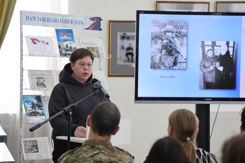 Елена Валерьевна Пиляева, мать Дмитрия Пиляева, рассказала о службе сына, поблагодарила Елену Алексеевну Кареву за книгу и пожелала всем мира, а героям – скорейшего возвращения домой.