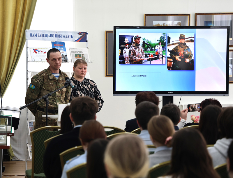 Внимательно слушали участники презентации выступление десантника Алексея Юдина, который приехал с фронта в отпуск; Натальи Ефимовны Чепиной о ее муже Геннадии Васильевиче и сыне Дмитрии Чепиных, находящихся на СВО.