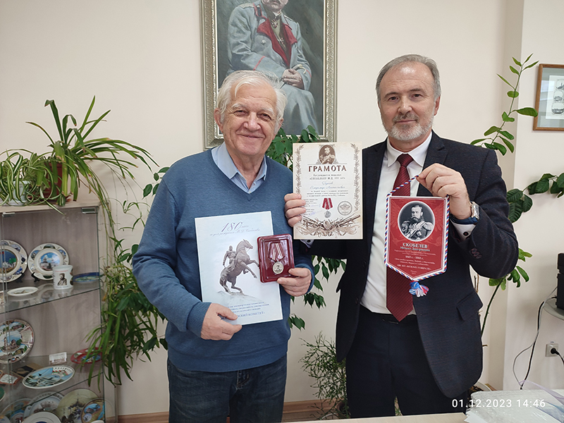 В торжественной обстановке было проведено награждение группы рязанских ученых, краеведов и общественный активистов за большой вклад в сохранение исторического воинского наследия и памяти выдающегося полководца и государственного деятеля России Михаила Дмитриевича Скобелева. Медали Скобелевского комитета вручил председатель Рязанского филиала Скобелевского комитета, ректор РГУ им. С.А. Есенина Игорь Александрович Мурог. В числе награжденных сотрудники библиотеки имени Горького – ведущий научный сотрудник краеведческого информационного отдела Николай Семёнович Попов и ученый секретарь Владимир Анатольевич Горнов.