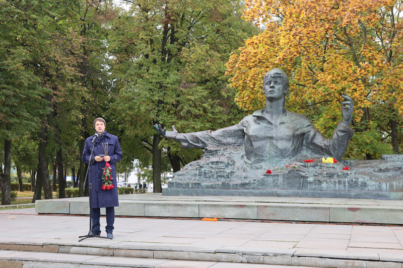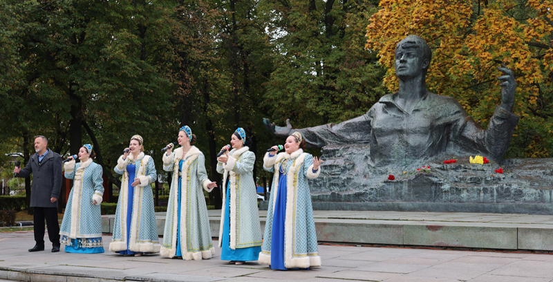 По сложившейся традиции все участники митинга возложили цветы к памятнику поэту.