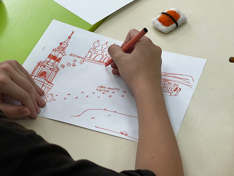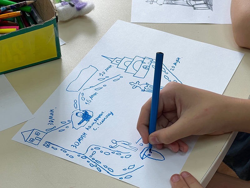 Затем ребята нарисовали свой туристический маршрут и посчитали, сколько шагов они делают, когда передвигаются по нему. Это были повседневные походы в школу, театр, парк, маршруты выходного дня по памятным местам и многое другое.