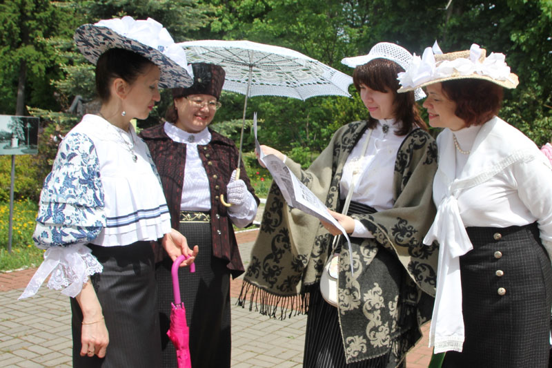 «Вуаль» познакомилась с выставкой работ лауреатов художественного фестиваля «Салют, месье Петипа!», встретила на дорожках парка самого месье Петипа, который любезно раздавал всем желающим свежий номер «Петроградской газеты»; участницы мастерской создавали атмосферу начала прошлого века, демонстрируя стилизованные наряды.
