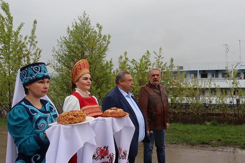 Первых туристов, прибывших на теплоходе, встретили творческие коллективы Касимова. Артисты представили анимационную программу, в которой с удовольствием приняли участие все желающие: и туристы, и местные жители. Подарки от местной кондитерской фабрики были вручены капитану теплохода Константину Горожанову и самым активным туристам.