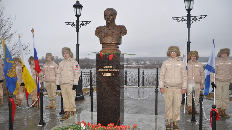 Бюст адмирала А. П. Авинова, выполненный из бронзы, установлен на берегу Оки.