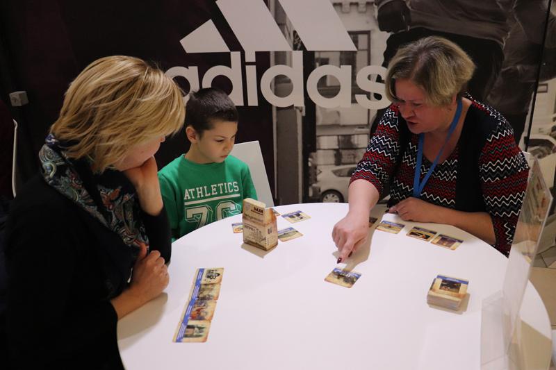 Все пришедшие на презентацию приняли участие в импровизированном открытом турнире. С помощью карточек с перечислением различных исторических событий участники настольной игры выстраивали единую линию времени. Начав со стартовой карточки, игроки вспоминали, какое событие за каким следует.