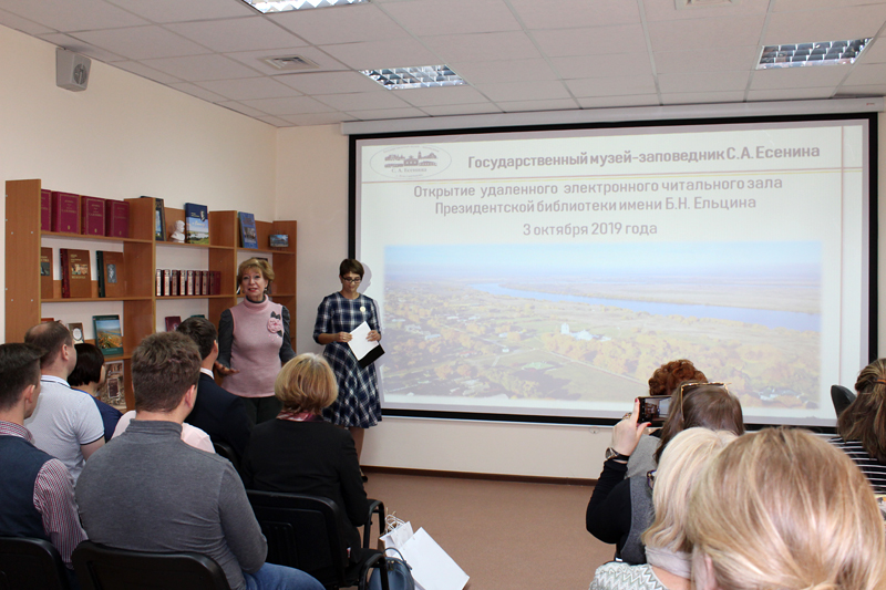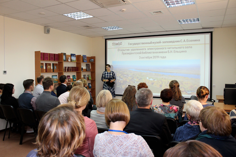 3 октября в рамках X Ежегодного интеграционного форума в Государственном музее-заповеднике С.А. Есенина открыт удаленный электронный читальный зал с доступом к ресурсам Президентской библиотеки имени Б.Н. Ельцина.