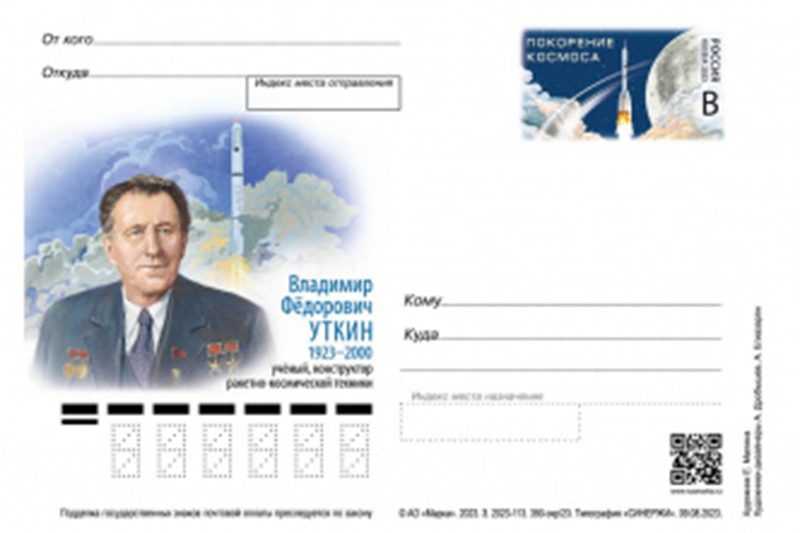 Почта России запустила в обращение почтовую карточку с оригинальной маркой к 100-летию со дня рождения ученого, конструктора ракетно-космической техники, уроженца Рязанской области В.Ф. Уткина.