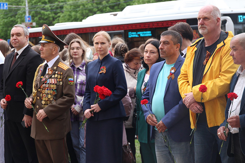 Гостями торжественной церемонии стали: участник Великой Отечественной войны Герман Грибакин, ветераны СВО, члены областного отделения Российского военно-исторического общества, краеведы, жители города.