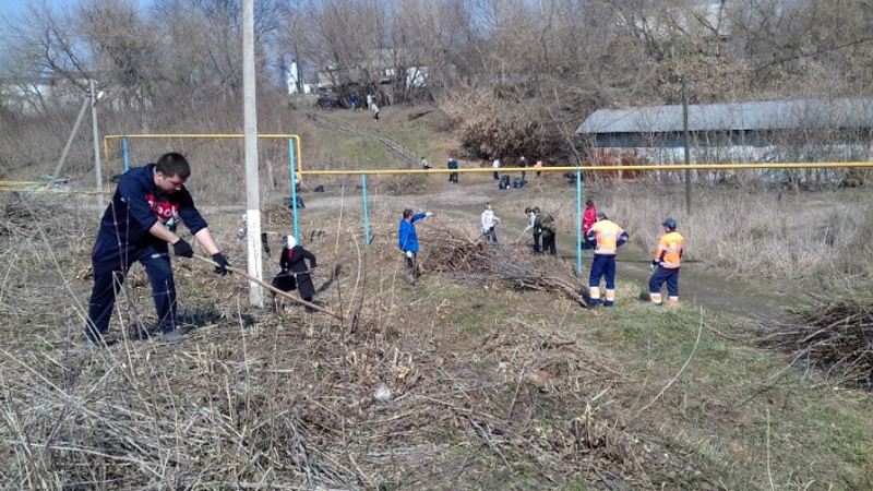Сотрудники центральной и детской библиотек убирали прошлогоднюю листву и бурьян, красили бордюры у своих учреждений, белили деревья, приводили в порядок главную площадь села Путятино.