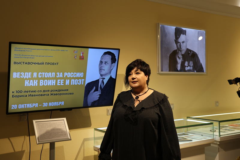 Инициатор и организатор выставки Ольга Николаевна Лебедева, директор Рязанской областной детской библиотеки имени Б.И. Жаворонкова, приветствовала гостей от лица коллектива и подчеркнула: открывшаяся выставка – это мост между поколениями. Она поблагодарила начальника Музея истории Воздушно-десантных войск Александра Петровича Щербакова за внимание к памяти о поэте.