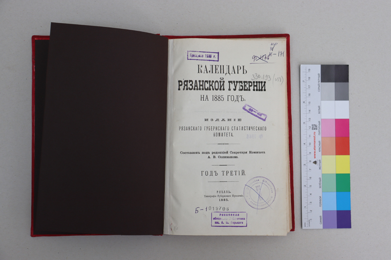 С печатным экземпляром «Календаря Рязанской губернии» за 1885 год можно ознакомиться в Краеведческом информационном отделе, а с оцифрованной копией – в электронной библиотеке «Рязанская область: страницы истории», которая содержит оцифрованные документы из краеведческого фонда библиотеки.