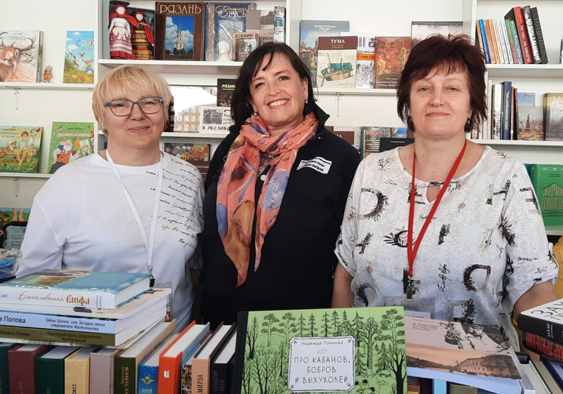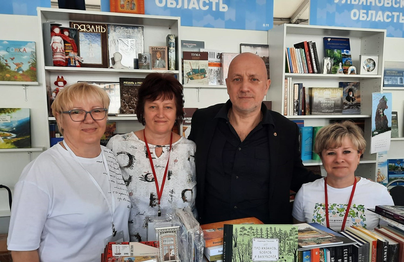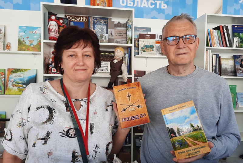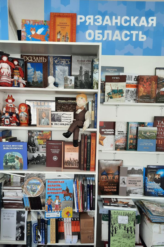 Стенд Рязанской области посетили руководитель рязанской сети магазинов «Книжный Барс» Светлана Платова, а также поэт и прозаик рязанской земли, член Союза писателей России Валерий Хлыстов, книги которого представлены на прилавке.