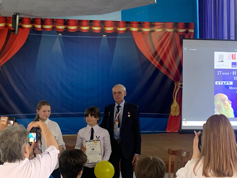 От члена Союза писателей России Владимира Алексеевича Хомякова и учащихся Сасовской средней общеобразовательной школы № 106 – участников конкурса «Поехали!», состоявшегося в рамках проекта «Два Гагарина» в Сасовской центральной библиотеке, прозвучало поэтическое приветствие участников.
