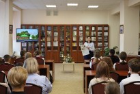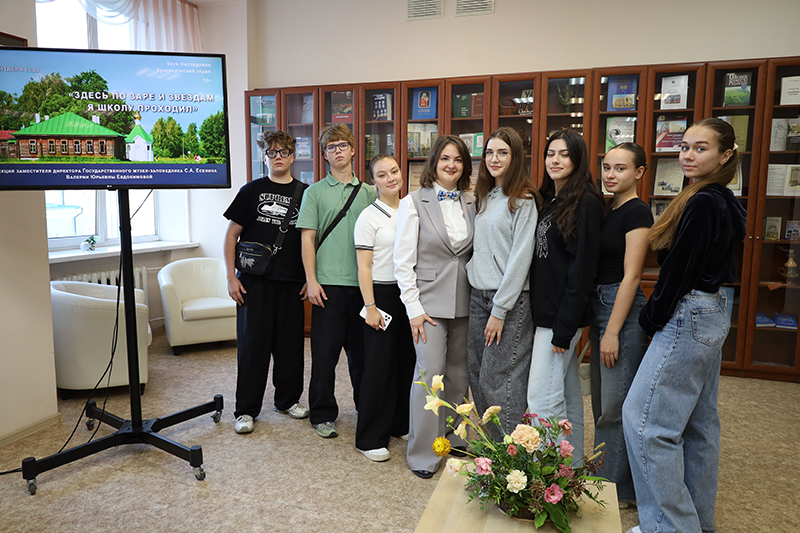 Перед юными краеведами выступила заместитель директора Государственного музея-заповедника С.А. Есенина Валерия Юрьевна Евдокимова. Она рассказала об истории народного образования в России, о том, как со времен Екатерины II увеличивалось число учебных заведений и учащихся, почему мальчиков было больше, чем девочек. Интересно было узнать, какие предметы изучали в Константиновском земском училище, которое окончил Сергей Есенин, и почему с творчеством Л.Н. Толстого знакомились больше, чем с другими писателями.