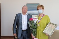 Президент Рязанского землячества в Москве Александр Васильевич Теренин вручил Рязанской областной универсальной научной библиотеке имени Горького Почетную грамоту и орден 1-й степени по случаю 30-летия землячества.