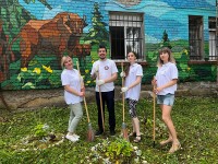 Волонтеры культуры совместно с библиотекой имени Горького приступили к доработке арт-объекта «Зубры» на стене диспансерного отделения для детей Областного клинического противотуберкулезного диспансера.