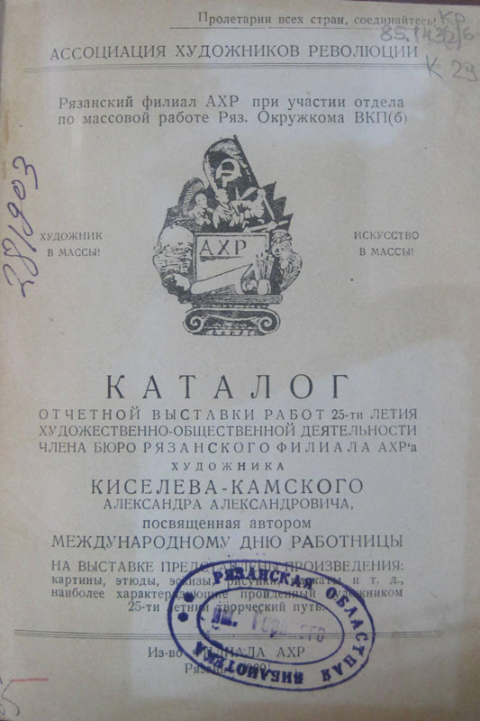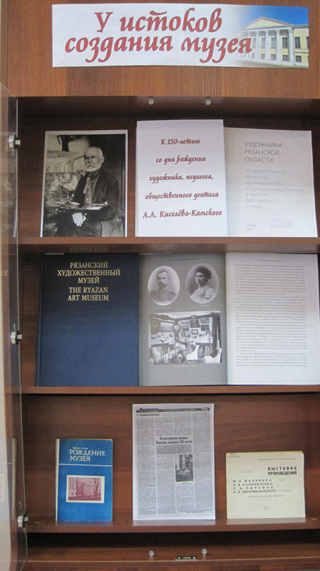 На выставке представлены документы и редкие дореволюционные издания: «Каталог I выставки картин, рисунков, скульптуры и других художественных произведений в г. Рязани» (1907 г.), «Медицинский отчет по Рязанскому городскому родильному дому и детскому приюту имени Сергия Живаго» (1912, 1913 гг.) и другие источники, рассказывающие о жизни и деятельности А.А. Киселева-Камского.